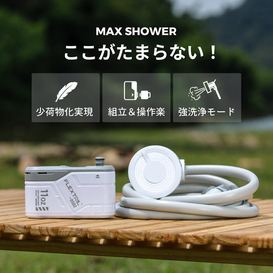 MAX SHOWER‐110分も使える充電式アウトドアシャワー
