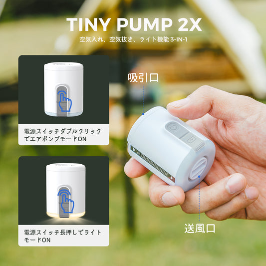 3-IN-1 TINY PUMP 2X -ライト機能付き、進化した手のひらサイズの電動エアポンプ